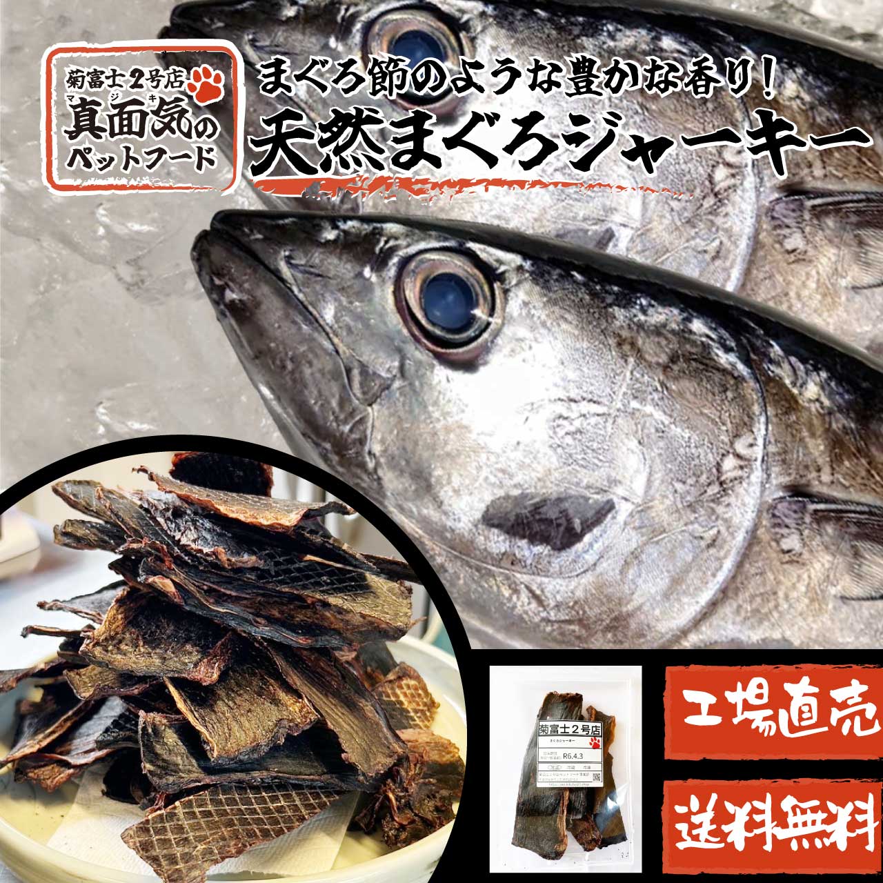 新鮮なまぐろを贅沢に使用した、愛犬(猫)向けの天然まぐろジャーキーが新しく仲間入りしました!