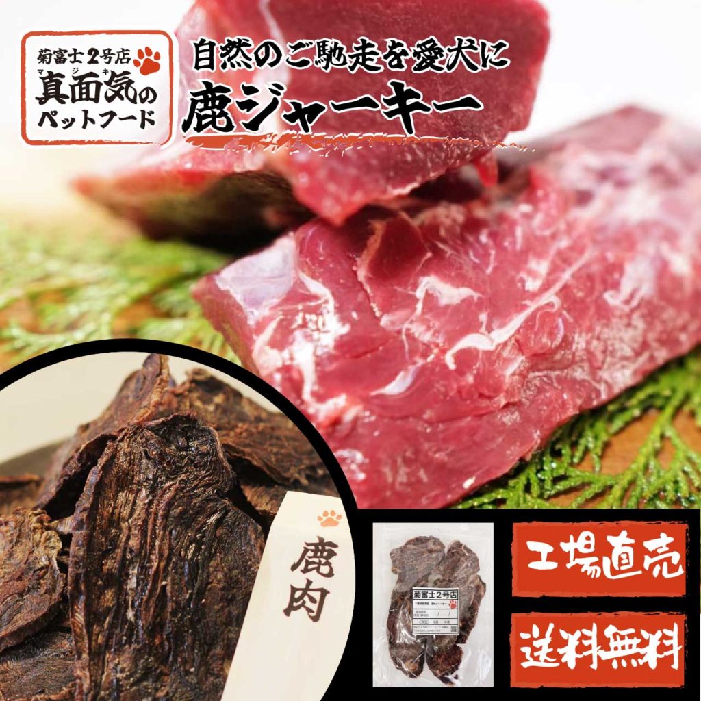 菊富士2号店で取り扱いのジャーキーは、保存料無添加で安心して与えられ、豚レバーと鹿肉ジャーキーは食べる量の調整のしやすさ、栄養面なども気に入っていただきました!ステラ動物病院さまでもご購入いただけます。