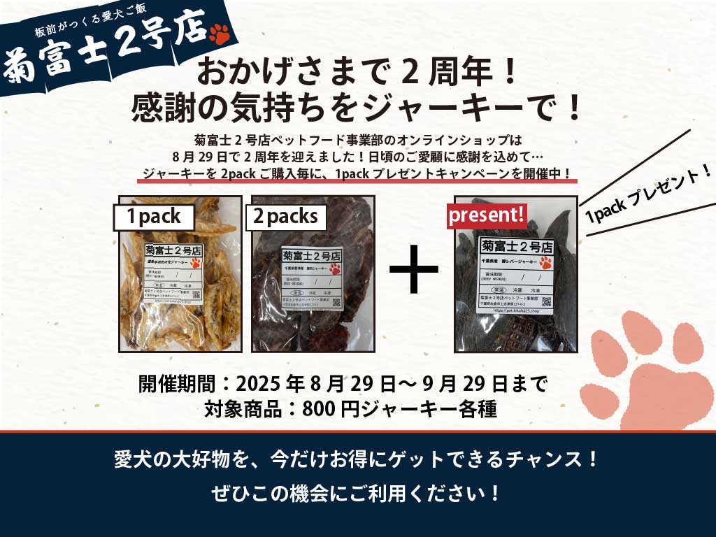 日頃より「菊富士2号店」のペットフードをご愛顧いただき、誠にありがとうございます。